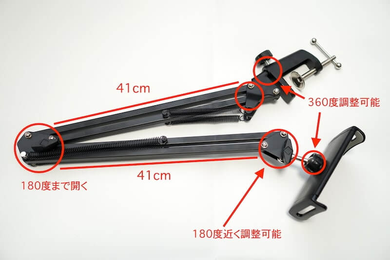 - 設置の柔軟性があるか(アームの可動域が広いか)